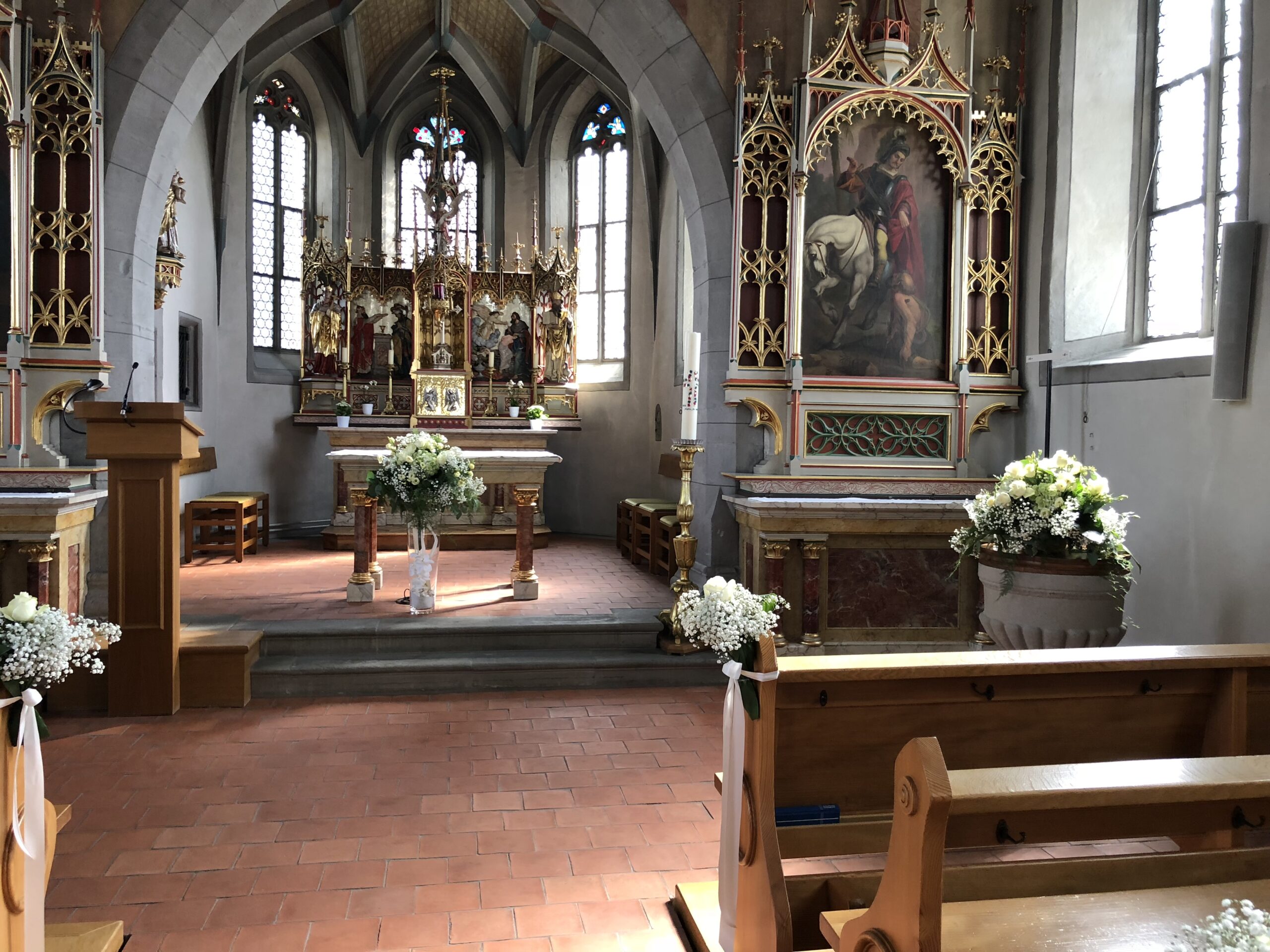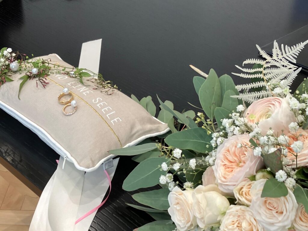 Gerne unterstützen wir Sie an Ihrem schönsten Tag der Hochzeit. Blumen Caesario gestaltet und dekoriert in der Kirche, im Festsaal, Restaurant oder an Ihrem Wunschort.